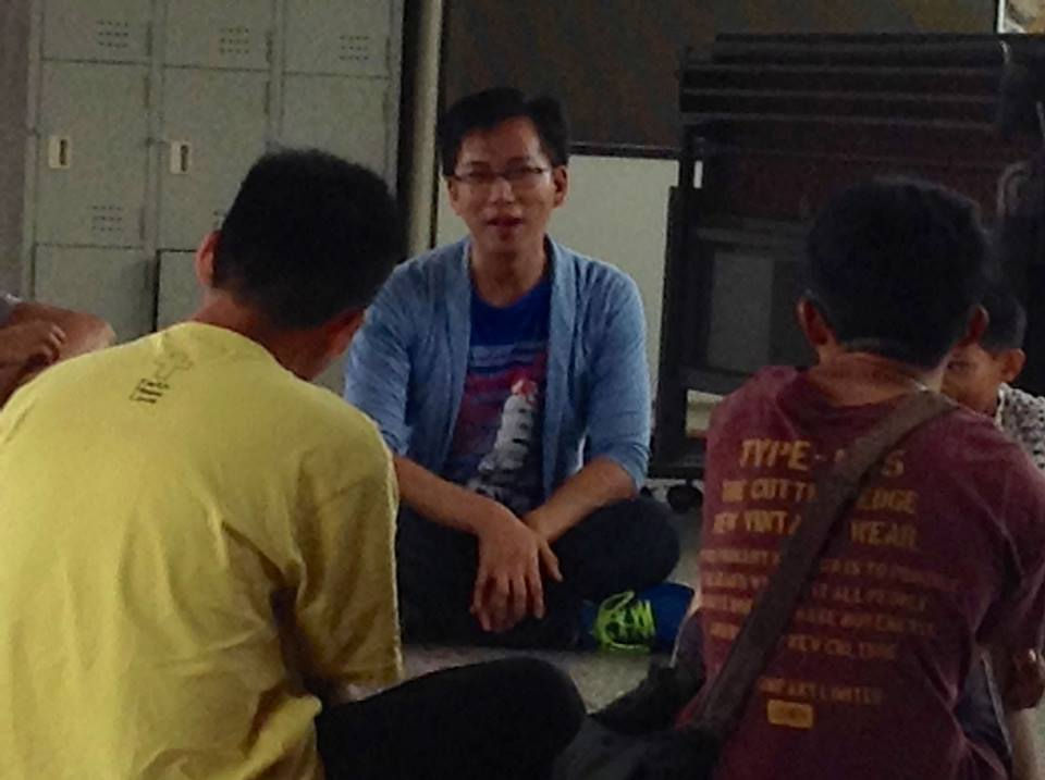但是,「我愛你」這句話對守禮、拘謹的東方人,真的真的難以輕易說出口。帶領映後戲劇活動的謝鴻文老師,一步步的鬆懈這群男孩子的心房,先是各種打招呼的方式:揮手說哈囉、握手、拍肩、碰額頭、擁抱、親手背、肺對肺...男孩們既害羞又聽話的執行指令,歡笑和玩笑聲此起彼落。